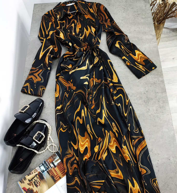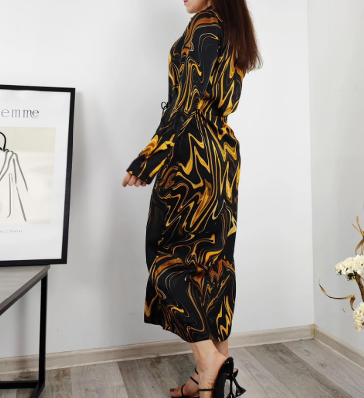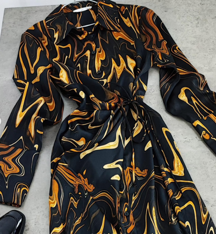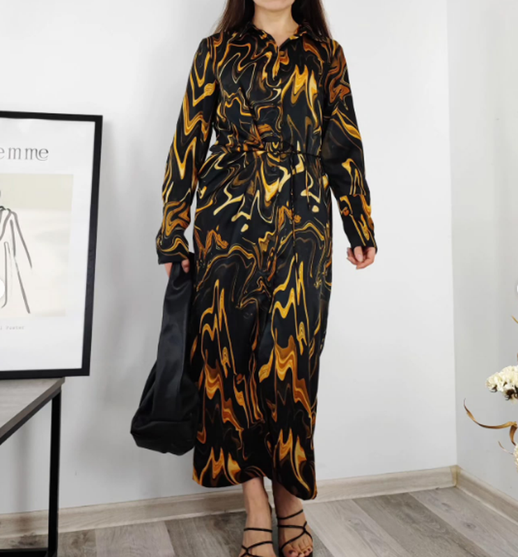 Гладенький цупкий сатин, не тягнетьсяРозмір SДовжина 127 смПівобхват грудей 48 смПівобхват талії 46 см, регулюєтьсяПівобхват бедер 51 смДовжина рукава 61 смШирина плечей 40 смСтан нової речі