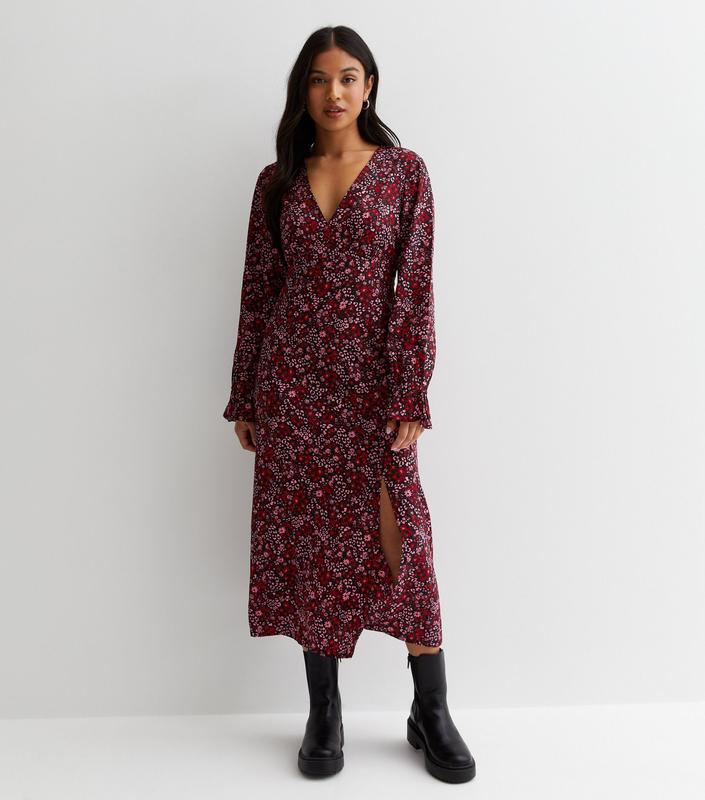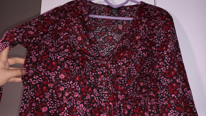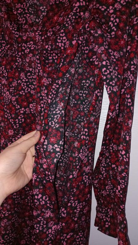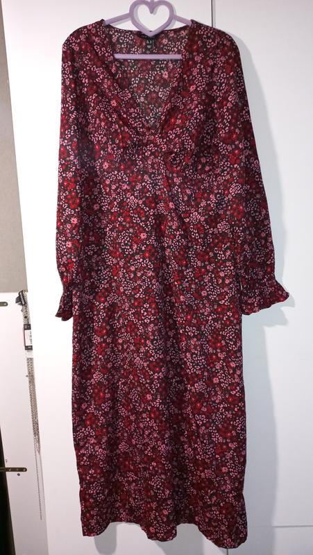 Квіткова сукня з декольте та розрізом. Збоку є застібка. Розмір по бірці uk 14. Пог - 52 смПот - 42 смПос - 55 смДовжина - 130 смДовжина рукава - 60 см