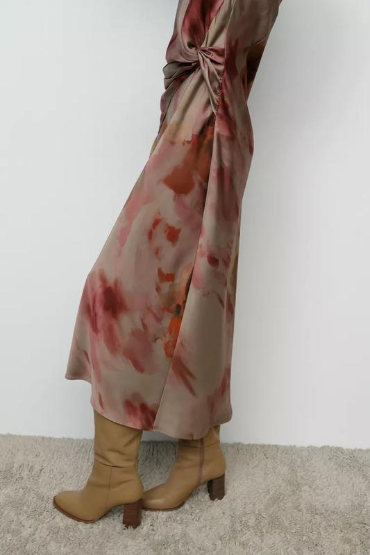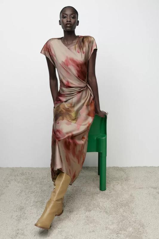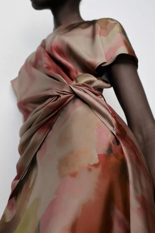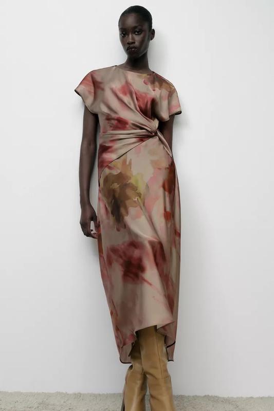 Сукня з круглим коміром і короткими рукавами. Вузол спереду на поясі та виріз із ґудзиком ззаду.Багатокольоровий | 9499/257
