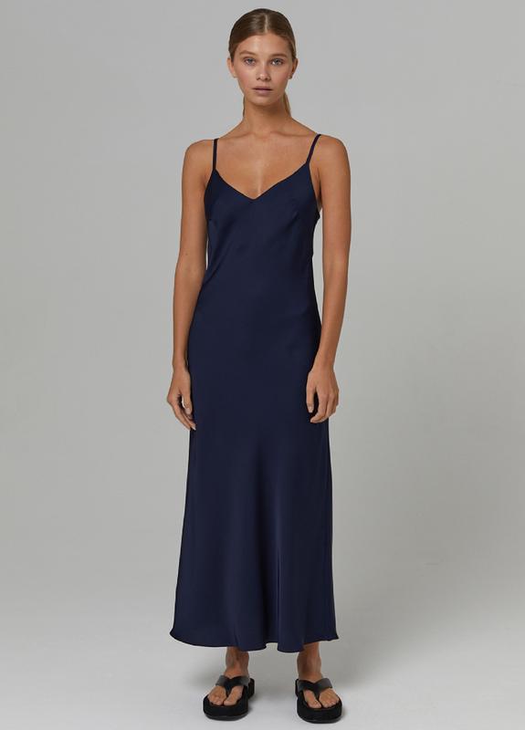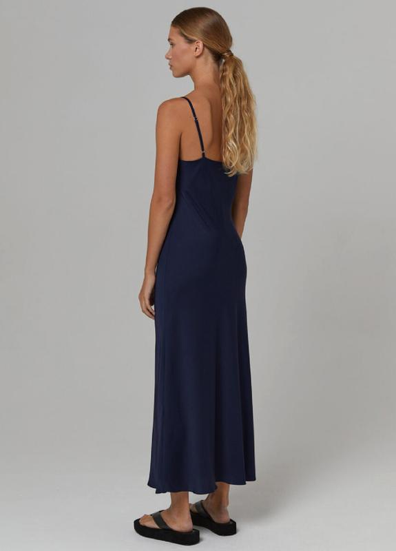Сукня скроєна по косій, за рахунок цього тканина лягає по фігурі та може дещо тягнутися.