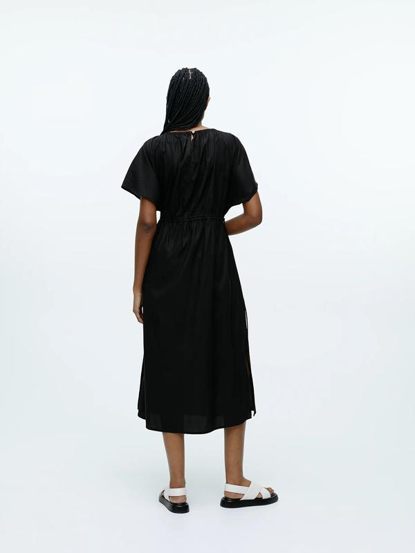 XXS / 40елегантна сукнябез підкладки зі шнурком для регулювання таліїзборками на шиї та короткими рукавамимає ґудзик на спині