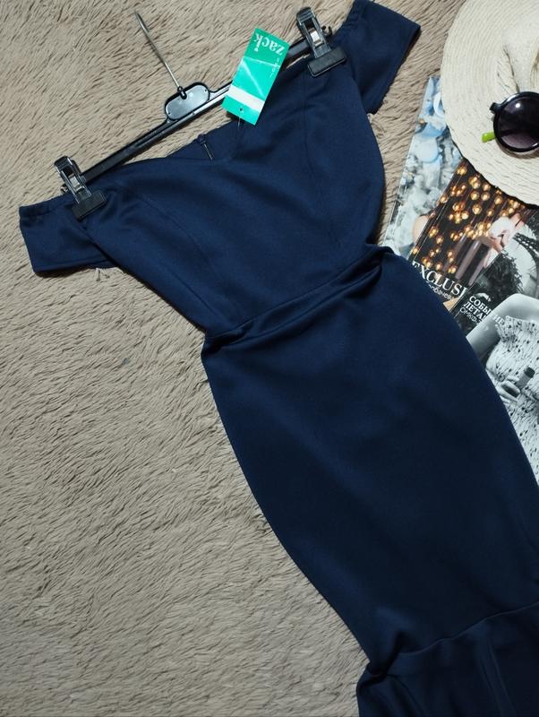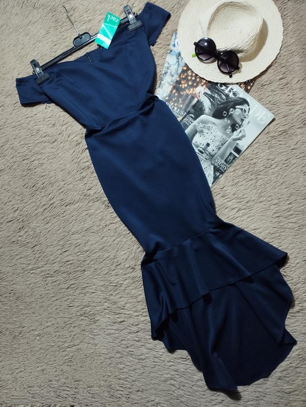 Нова, з біркою, але є плямка (останнє фото), не дуже помітно, в ціні враховано. Шикарна сукня міді з воланом внизу. Тканина середньої щільності, тягнеться. Виглядає супер 😍 Розмір 10/38/М, але маломірить , дивіться по замірам