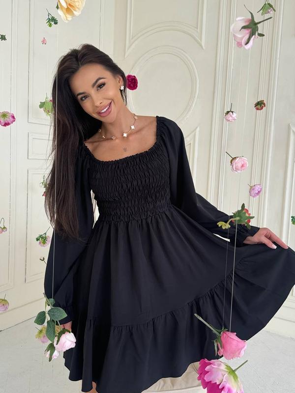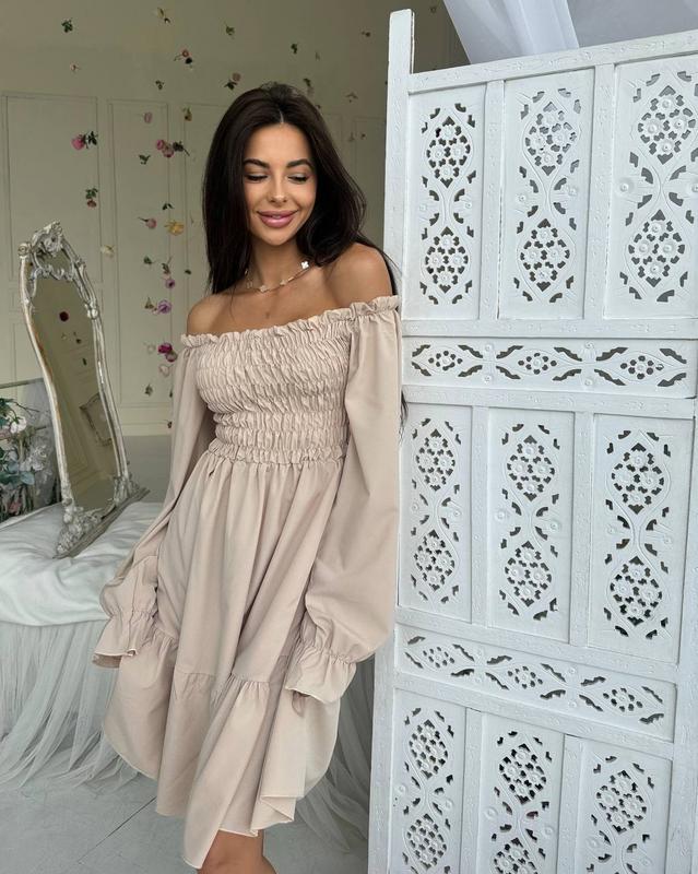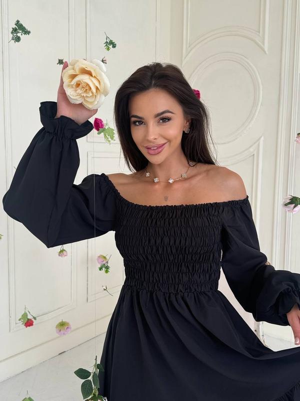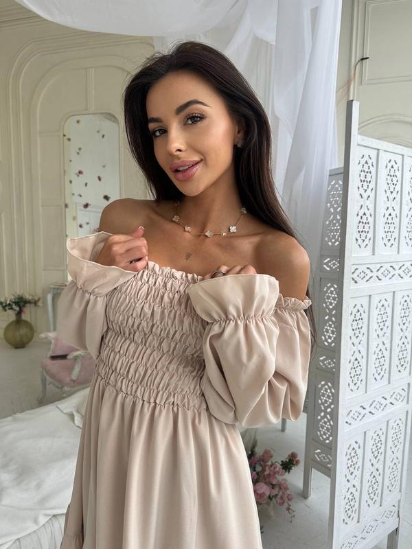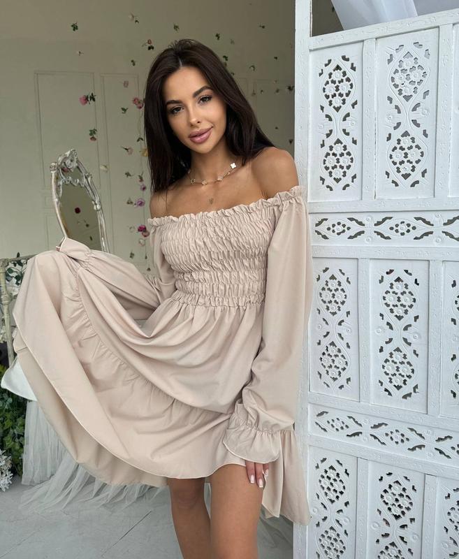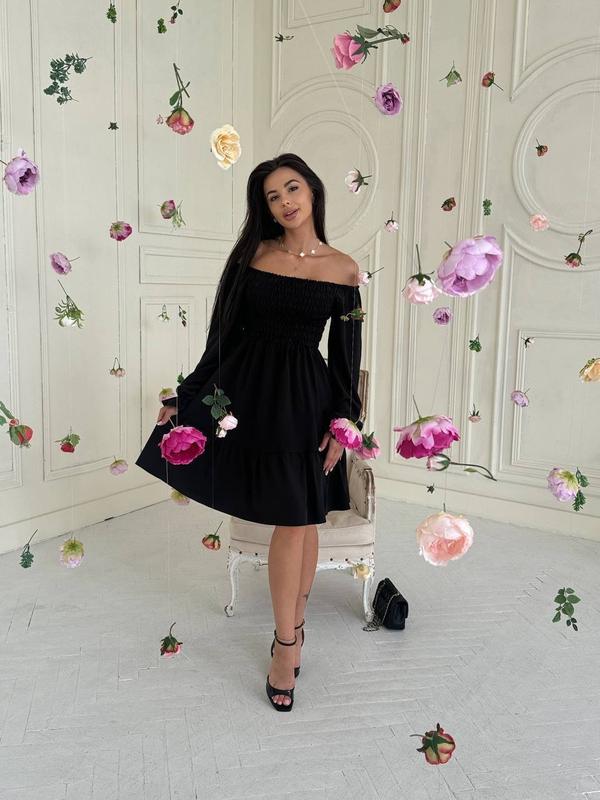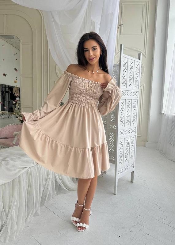 Довжина до коліна. На грудях резинка. Можна одягати зі спущеними та з піднятими плечиками. Супер якість!🔥