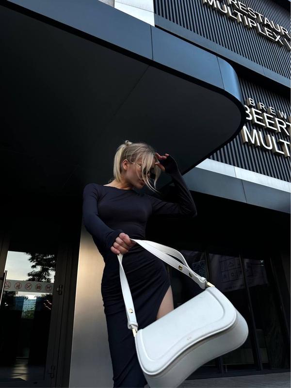 Сукня максі, прямого крою з розрізами у молочному кольорі