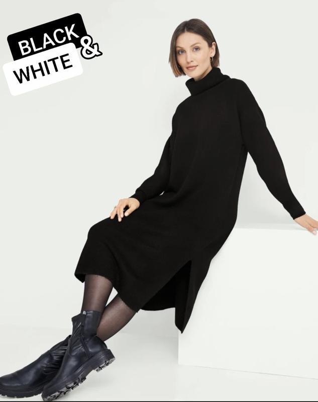 Чорна мʼяка сукня з розрізом на ніжці Під горло комірець Довжина до коліна в залежності від зросту(на 175 по коліна)