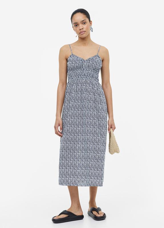 Міді сукня H&M в ідеальному стані. Матеріал: 100% бавовна. Є підкладка. Тканина тоненька, легка, приємна. Бретелі регулюються по довжині. На талії три гумки. Заміри: напівобхват грудей 50 см, напівобхват талії 41 см, довжина 132 см.