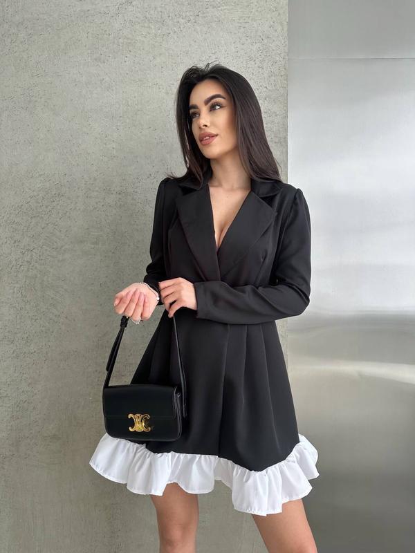 Відправка новою поштою ❗ Розкішна сукня-піджак, в якій ти будеш неперевершена🖤 ✔️Розмір: 42-44, 46-48 ✔️Тканина: Костюмка+софт ✔️Колір: чорний+білий Заміри вказані на останньому фото 535IN