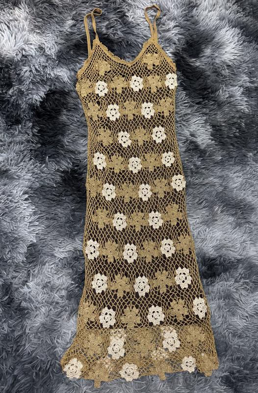 Красива вʼязана сукня, понизу на підкладці Добре тягнеться, розмір С-М Стрейчева, довжина міді, гарно відблискує, виглядає дорого, гарний стан, без дефектів