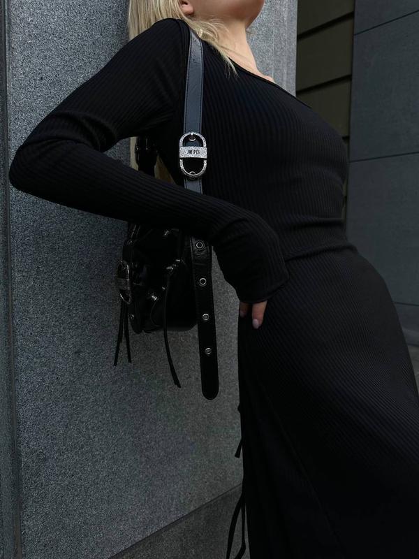 Трикотажна сукня - річ, без якого не обійдется модниця в цьому сезонні. Ми вам пропонуємо ось такий варіант довжини міді, на спині має шнурівку ,завдяки чому, гарно сяде на будь-яку фігурку. З такою сукнею легко створити витончений і жіночий образ ♥️