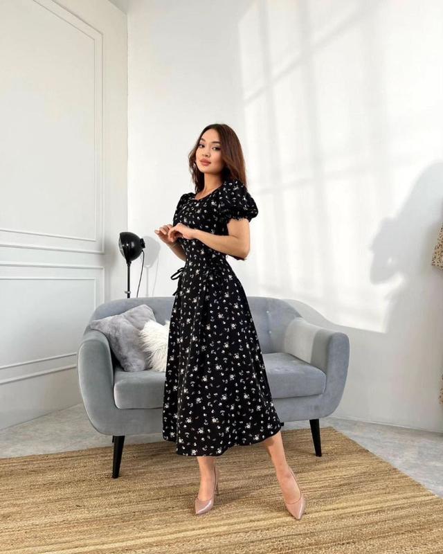 Дуже миленька сукня міді у квітковий принт та із завʼязками на талії по боках💝