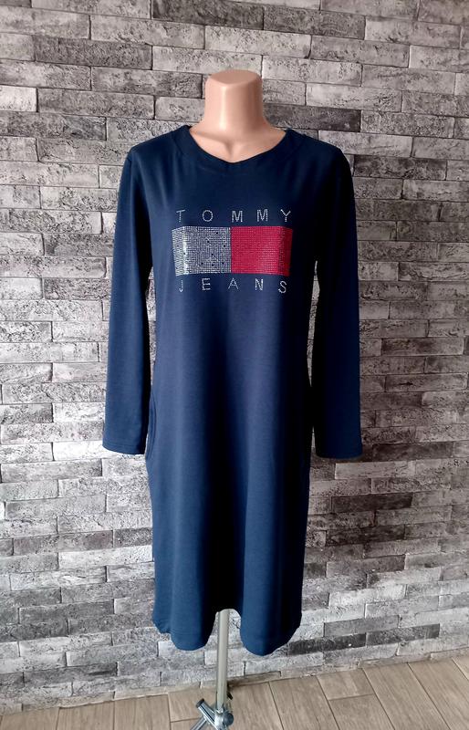 Сукня 95% бавовна, спереду коротша. Має 2 кишені. Без дефектів. Довжина спереду 91 см, по спинці 99 см Пог 51 см Пот 49 см Поб 56 см Плечі 43 см Довжина рукава 56 см По рукава вгорі 18 см Тканина тягнеться