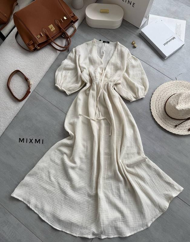 Сукня плаття жіноче муслінове літнє весняне бохо з рукавами ліхтариками і завищеною талією...