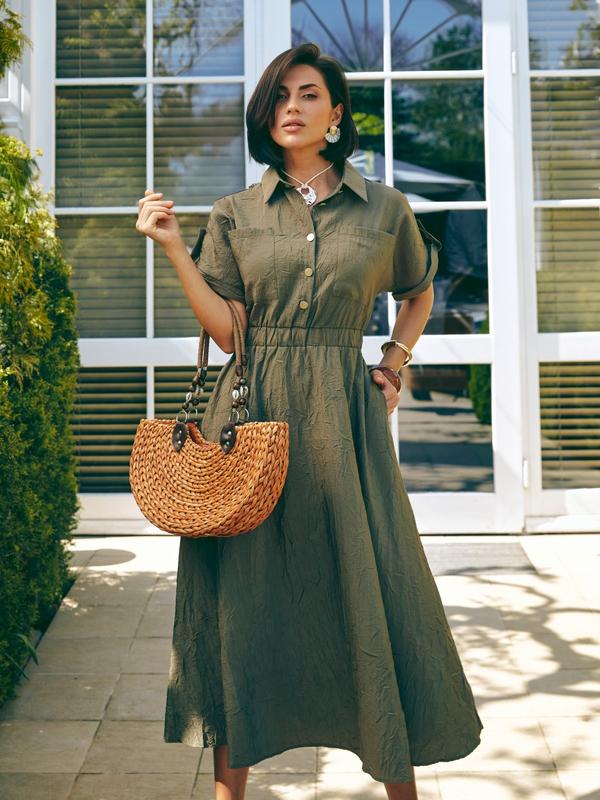 Плаття з високоякісного жатого турецького матеріалу. Модель з класичним відкладним коміром. З короткими цільнокроєними рукавами з манжетами та шльовками. Передня частина доповнена накладними кишенями та застібкою на ґудзики. Відрізна талія з резинкою підкреслює лінії фігури, забезпечуючи ідеальну посадку. Бічні кишені додають практичності, роблячи сукню зручною для повсякденної носки. Без застібки.Розміри: 44,46,48,50Доставка:💙 Укрпошта (повна передплата)💛Нова Пошта (повна передплата)✨Відправка 2-3 робочі дні🌿Є повернення та обмін