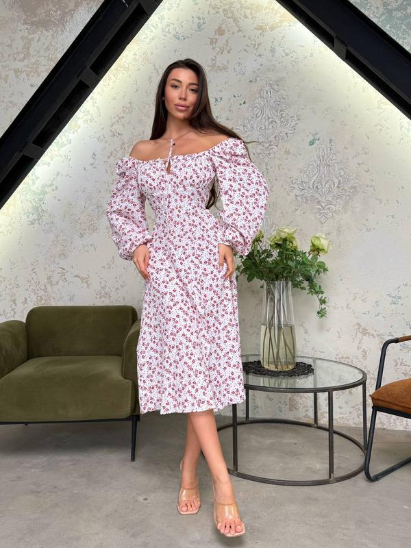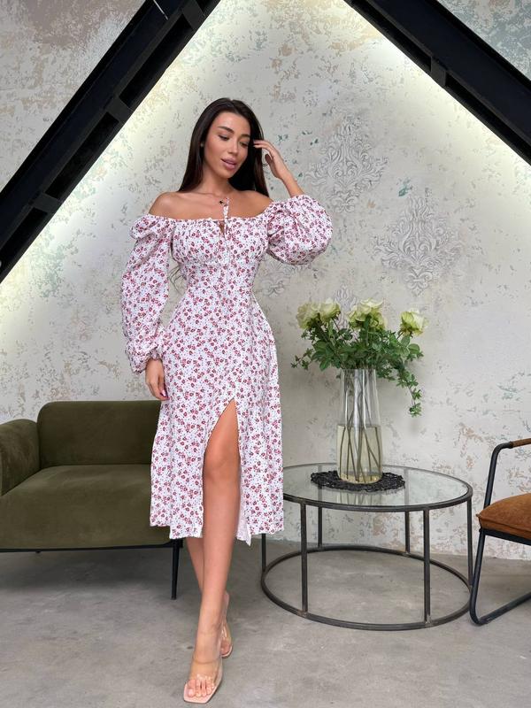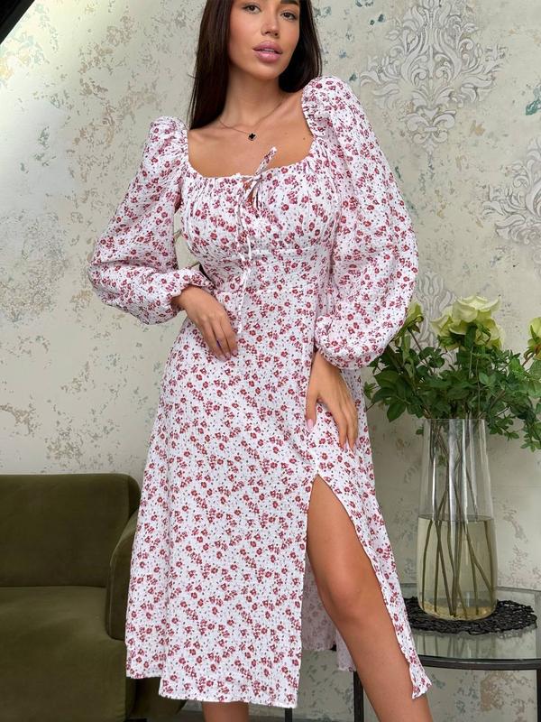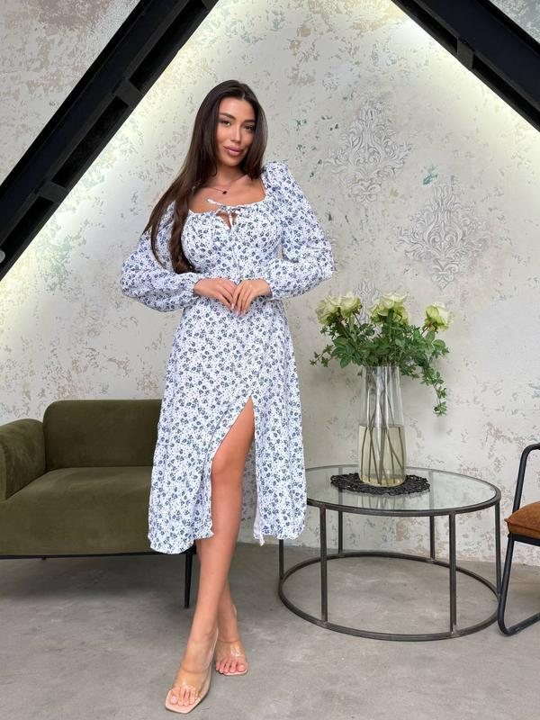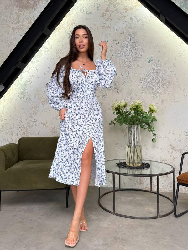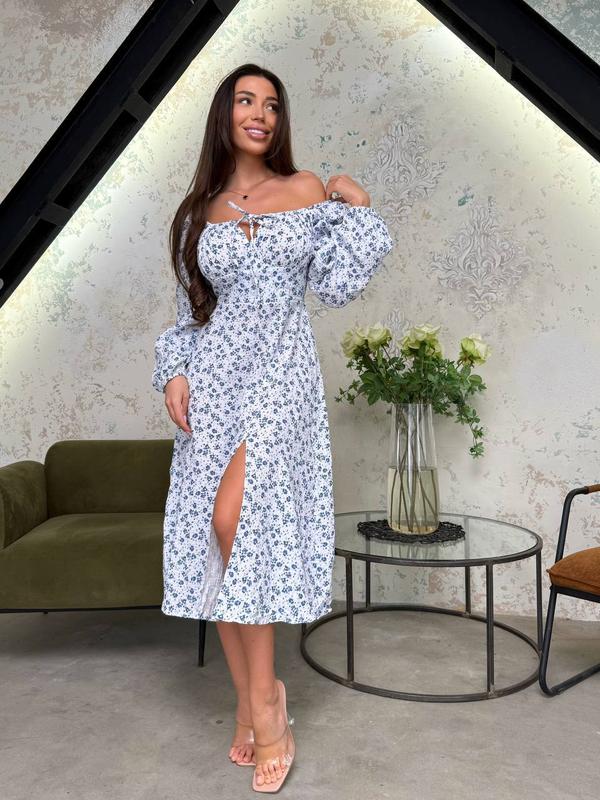 🔹Тканина: Муслін принт 🔹Розміри: 42-44, 46-48, 50-52 🔹Кольори: як на фото ‼️Заміри на останньому фото ➡️ Вишукана муслінова сукня з квітами 🌸На грудях завʼязки , ззаду на талії гумка 💋