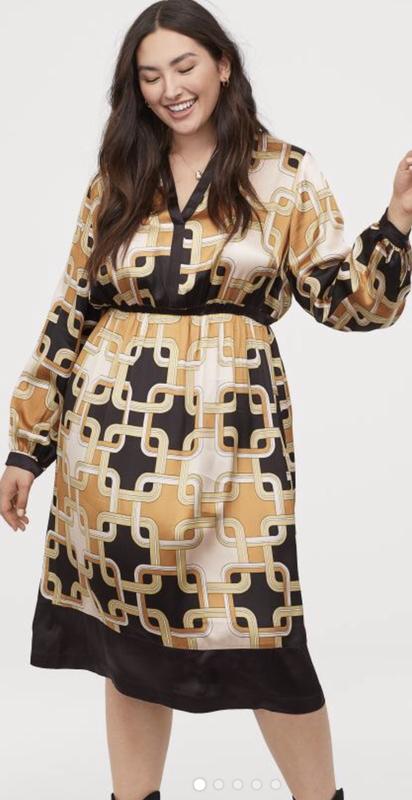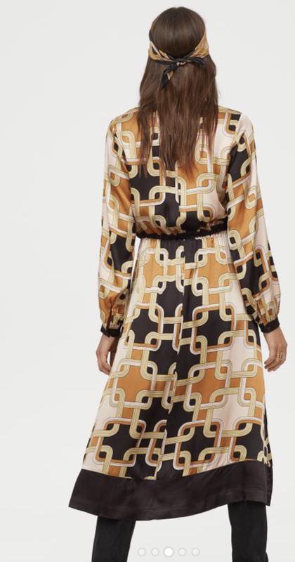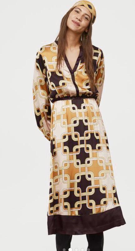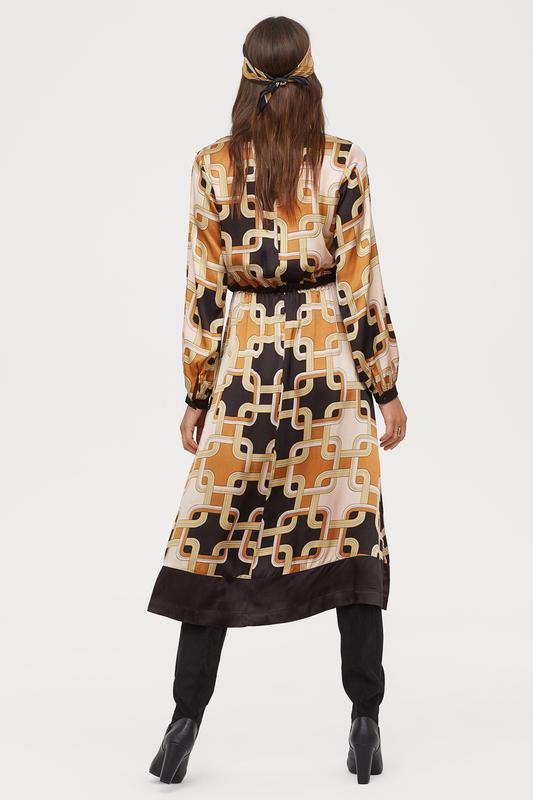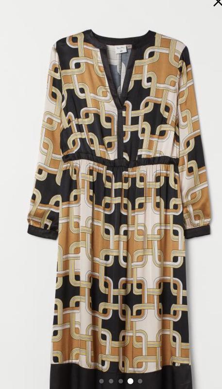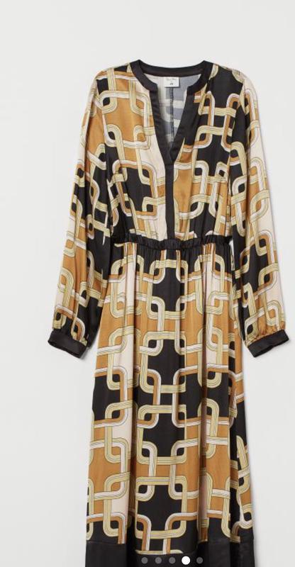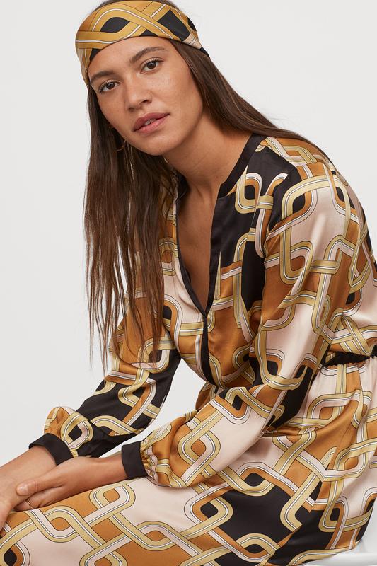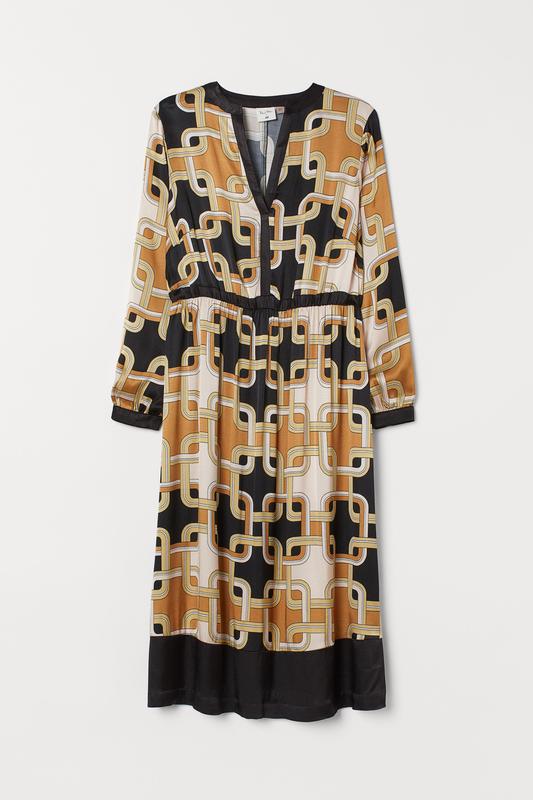 RICHARD ALLAN x H&M. Платье длиной до икры из вискозы с набивным рисунком. Треугольный вырез горловины, длинные широкие рукава с узкими манжетами на обтянутой пуговице. Отрезная талия на узкой резинке. Без подкладки.