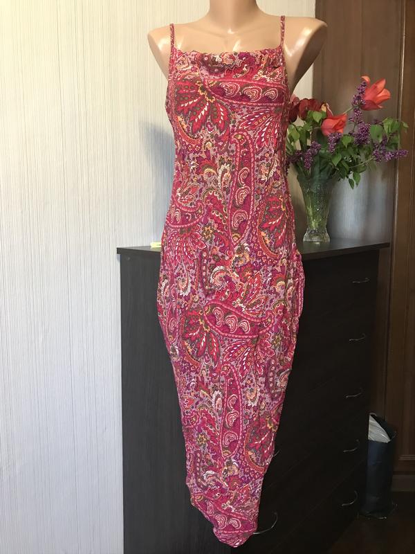 Сукня-сорочка міді з принтом, металевою ниткою zara s-m