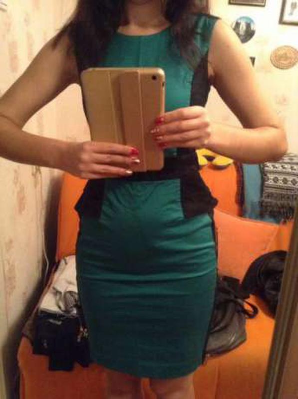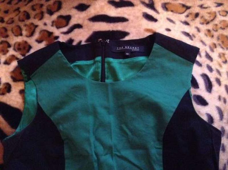 Офісне плаття Top Secret, р. 40 (М-L). Чорно-зеленого кольору. Ззаду невеликий розріз. Застібається на блискавку ззаду. Довжина-95 см, ПОГ-48, ПОТ-40, ПОБІДИ-51.