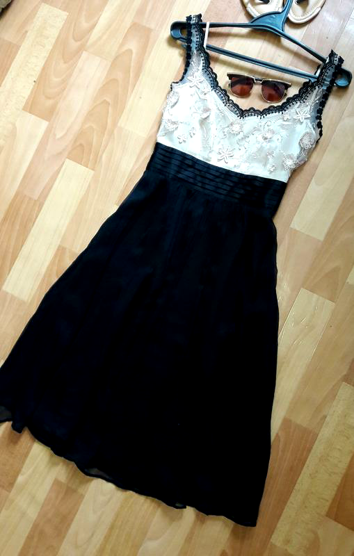 Дуже красива чорно-бежева сукня міді з вишивкою на підкладці, розмір М(10). Півобхват грудей 45 см + виточки, не тягнеться, застібається збоку на змійку, талія трохи завищена, півобхват 38 см, не тягнеться, вільні стегна, довжина 105 см, стан нової речі!