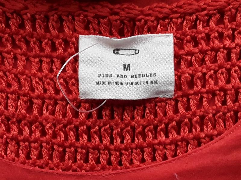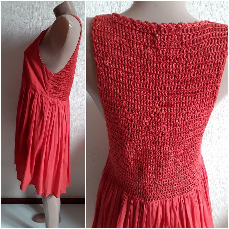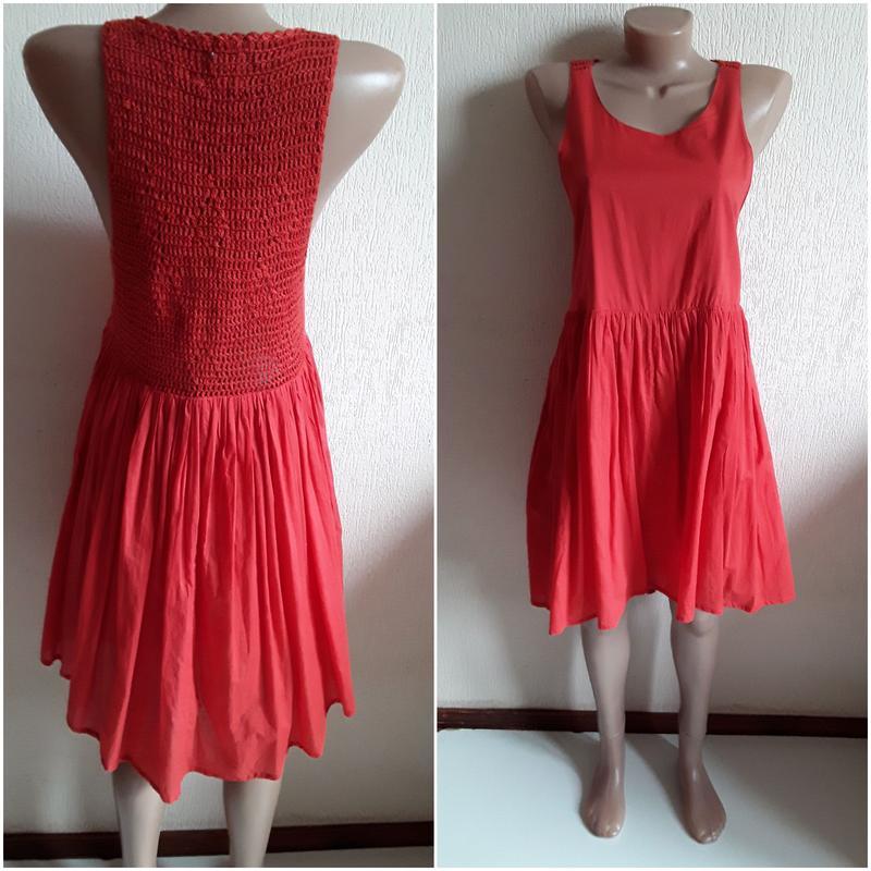 Нове , паперового ярлика немає Легкий , натуральний верх і підкладка , спинка пов'язана гачком розмір вказаний М пог 44 см ,за рахунок в'язаній спинки тягнеться до 50 см Пот 44-46 см довжина 87 - 98 см