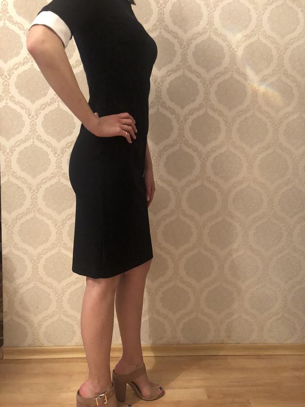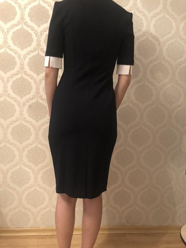 Сукня нова, жодного разу не одягалася, лише зрізана бірка. Тканина темно синього (майже чорного) кольору,щільний дуже приємна абсолютно не мнеться, добре тягнеться. Купувала собі, на шкода змінилася виробнича ситуація.