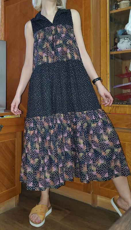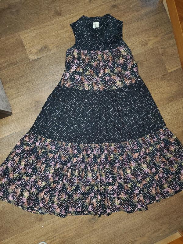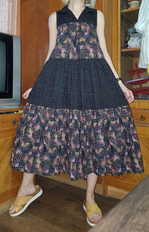Вінтажна сукня вільного крою, написаний р. 12, дуже маломерит, підійде на наш р. ХХС-ХС. На фото ріст 160см 83-64-83. Стан відмінний, як для вінтажне речі, дефектів немає. Тканина 100 % бавовна. Без торгу. Заміри за запитом. Повернення не передбачено.