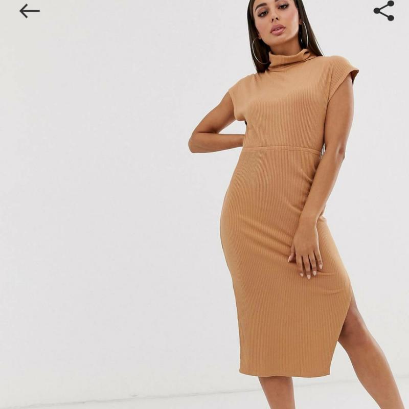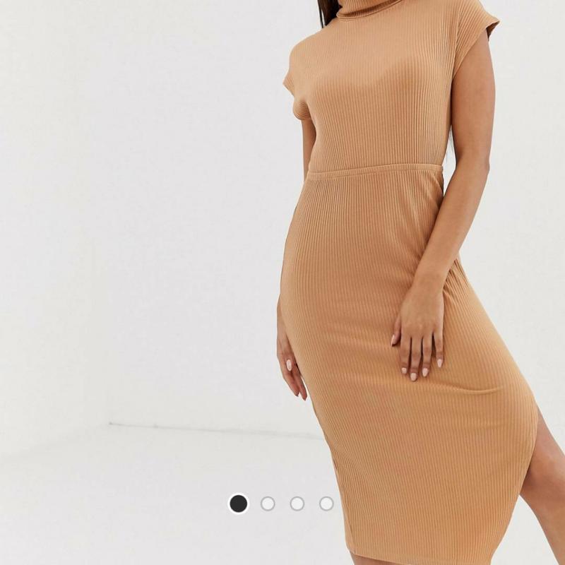 нюдовое сукню в рубчик від Asos, довжина міді. розмір uk 14,/42 на наш 48-50 Л-Хл, колір кемел пог 50 , довжина 122