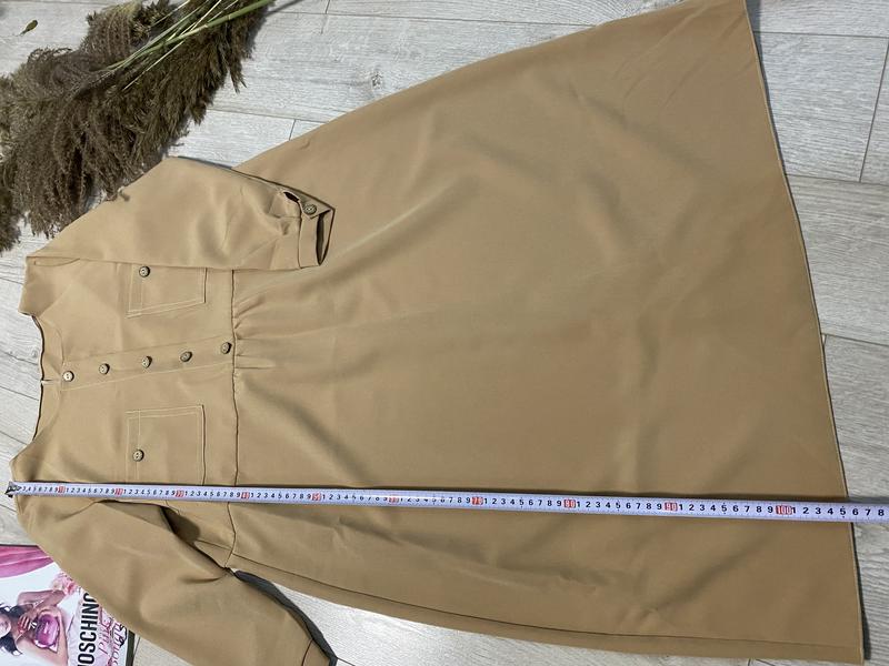 Фото На тілі немає) заміри на фото) не тяжні))плаття в ідеальному стані без дефектів, застібок немає, плаття «вільне» зшите на замовлення «ґудзики та кишені «декор» підійде на розмір 40-44 європейський підійде і як оверсайз, орієнтуйтеся за вимірами)