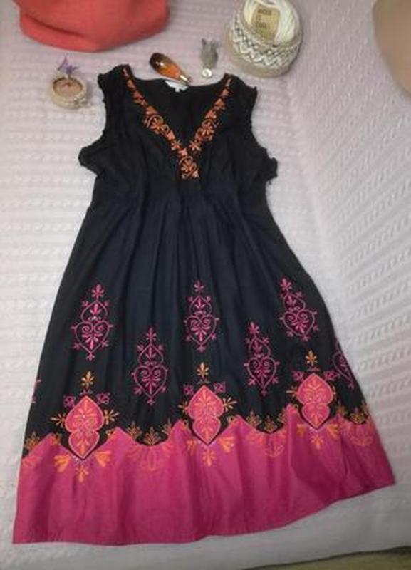 Бавовняне плаття з красивою каймою та вишивкою, р. 22 Довжина - 110см ПОГ - 60см ПІТ - 57см ПОБІДИ - 71см