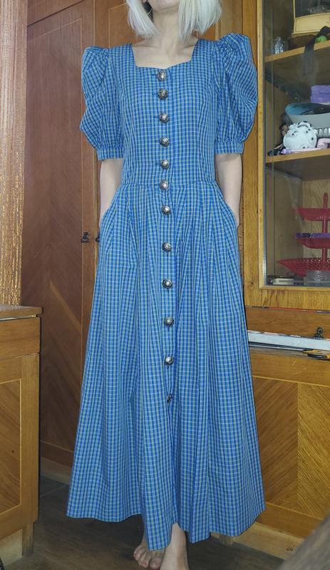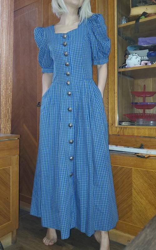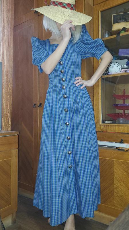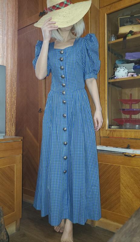 Вінтажна сукня в клітку р. ХС-С. На фото ріст 160см 83-64-83. Плаття шикарне, красива фурнітура під срібло, на фігуру сідає ідеально, в цілому якість класна. Стан ідеальний, можна сказати нової речі. Заміри за запитом. Повернення не передбачено.