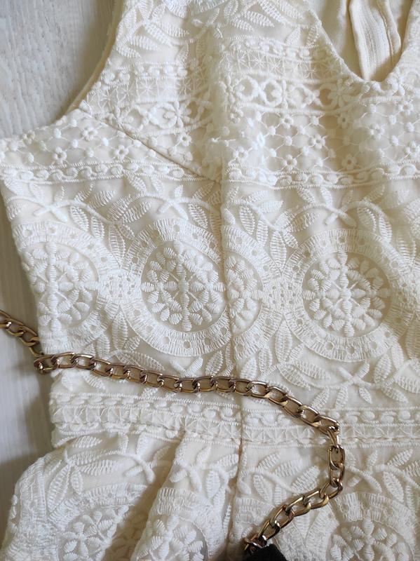 Красиве, елегантне плаття від h&m, колір молочний Гарно сидить на фігурі, щільна тканина, красиве мереживо, виглядає дорого, так як тканина щільна, то якщо є питаннячка у фігурі, плаття відмінно приховує їх;) раджу, відмінне плаття, см заміри: Пог-48 Пот-40 Побіди-57 довжина: Попереду 87 Ззаду-91 Заходьте на мою сторінку, розвантажують гардероб, багато різних красивих суконь🌷👗