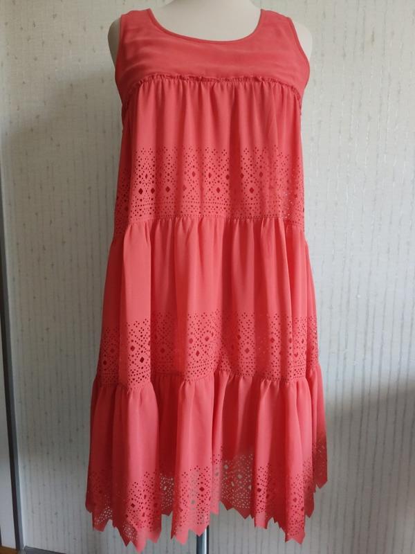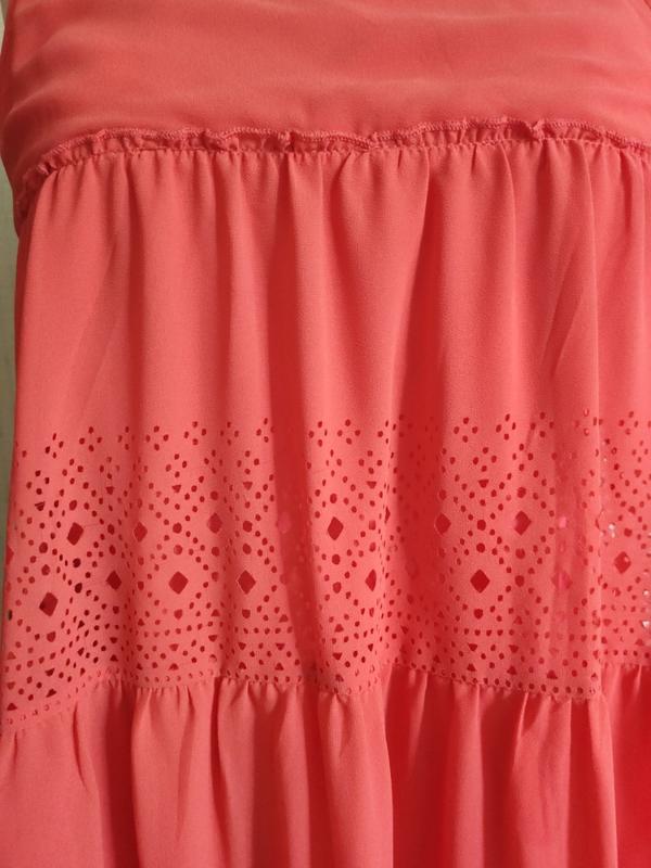 шикарне коралове сукню з гарними рюшами і тканини з перфорацією відмінний ошатний варіант для повсякденного носіння і на свято 💖💖💖підкладка з натурального тонкого батисту🔥🔥🔥 зверху тканина не мнеться, тонка і легка💫⚡⚡⚡