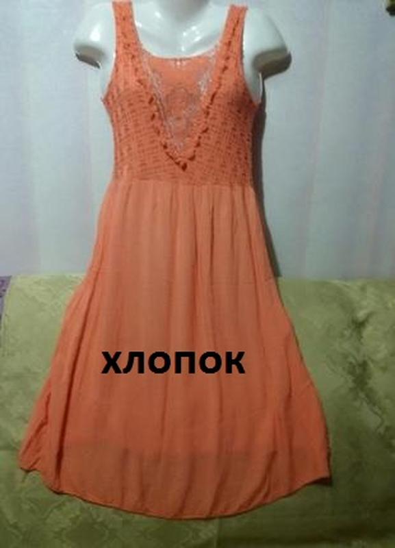 Стан хороший, зауважень немає, тільки прим'ято. Внизу не підшита, просто оверлочено. Спідниця короткий. Тканина тоненька, шовковиста. Колір яскравий, морквяний, насыщенее, ніж на фото. Верхній ліф в дірочках, трикотажне полотно. Мереживо котоновое. Дуже красиво виглядає. Тільки відпрасувати. Розмір не вказаний. Заміри : Довжина 109 см ПОГ 41-48 см ПОТ 41-45 см ПОБІДИ 58 см + Висота пройми рукава 20,5 см Склад: 95 % котон 5 % еластан