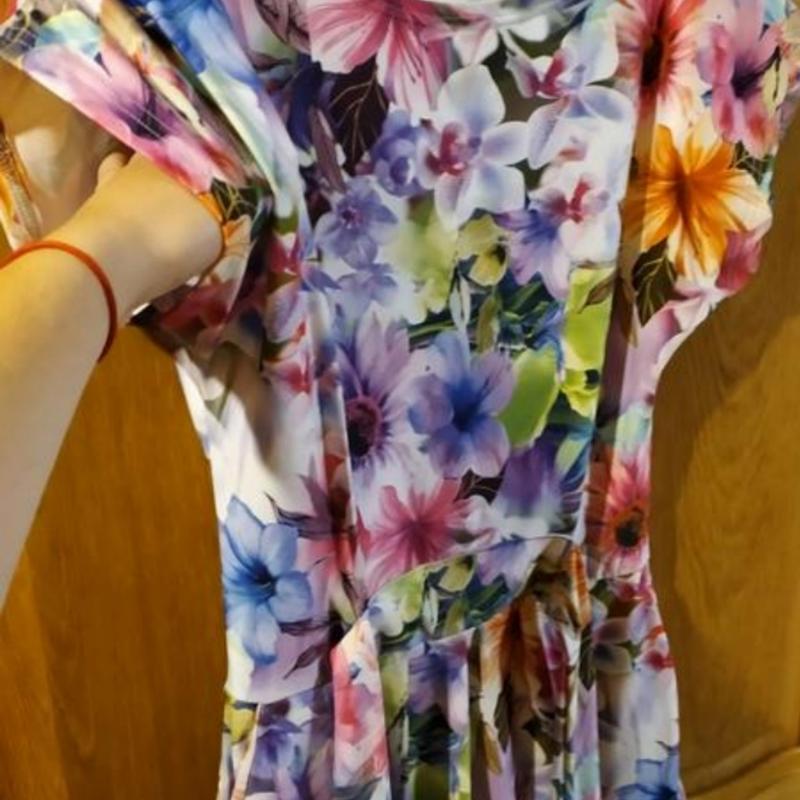 Легке плаття під пояс,з кишеньками, дуже яскравий і красивий літній принт