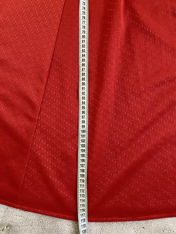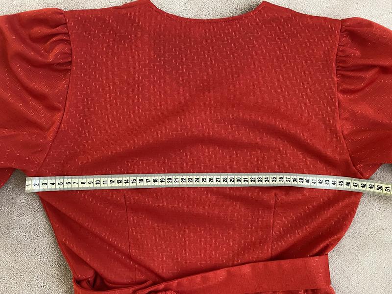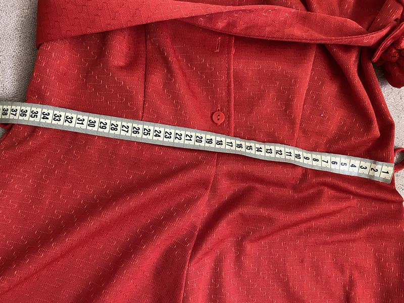 Стрейчева тканина, але не тягнеться в області талії. ПІТ - 36 см, тягнеться до 39 див. Пояс знімається. Колір цегляно-кораловий.