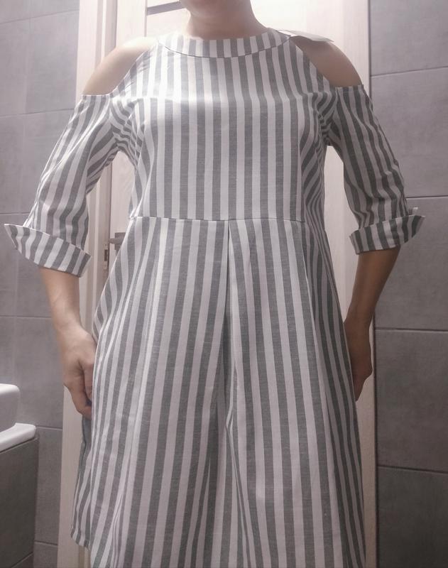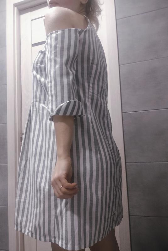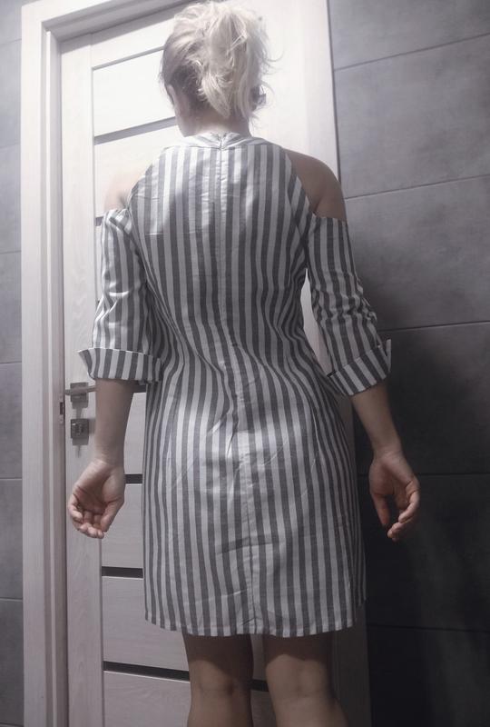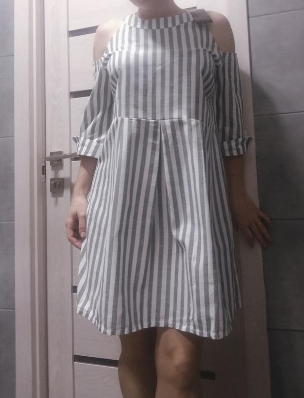 БЕЗКОШТОВНА ДОСТАВКА УКР ПОШТОЮ Плаття нове. З біркою. Натуральний тонкий льон. Сіре з білим. Розмір L. Повітряне, якісне пошиття. Довжина - 83 см, ПОГ - 49 см, ПОТ - 46 див. В стегнах до 136 см в об'ємі. На фото надіто на розмір М.