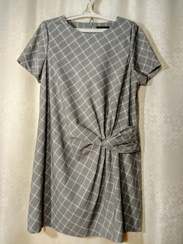 Ідеальний стан. Якісна тканина з великою часткою натуральних ниток. Підкладка у сукні - тонкий міцний поліестер. Уздовж спинки блискавка довжиною 57 див. Поличка декорована закладеними складках тканини. Виглядає дуже ефектно. Тканина не мнеться, не линяє, дуже проста в догляді. Не тягнеться. ПОГ - 55см ПІТ - 55см ПОБІДИ - 60см ширина пл. внизу - 68см Дл.изд. - 96см
