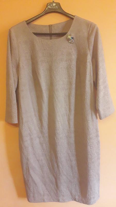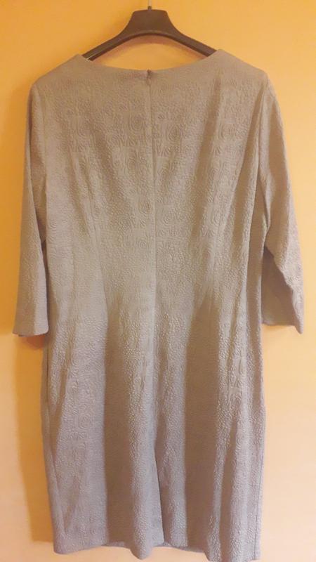 сукня не яскравого мерехтливої кольору, жаккардова тканина, ззаду на замок, по боках дві кишені, 54 розмір, ПОГ-55см, ПОТ-52см, плечі-41см, довжина рукава-47см, довжина сукні-105см, у складі: 70%-поліестер, 20%-спандекс, 10%-віскоза, нове