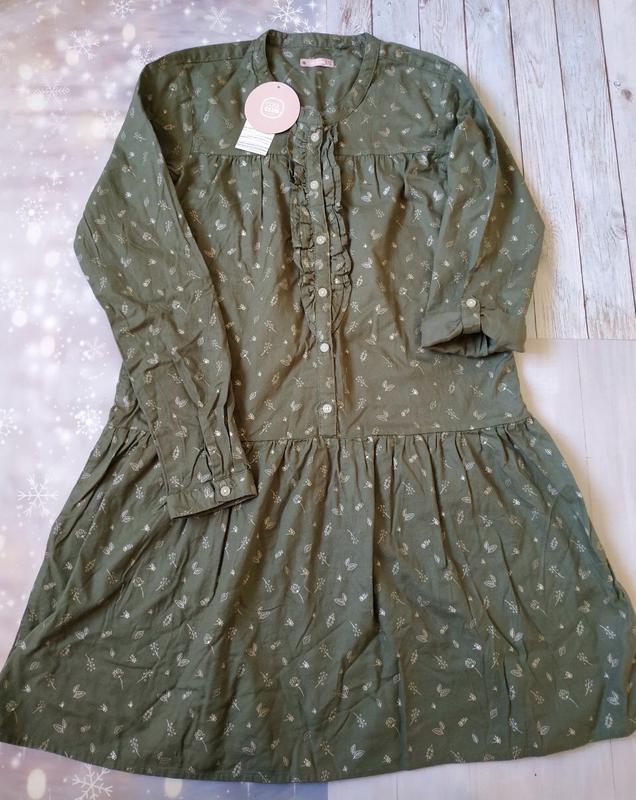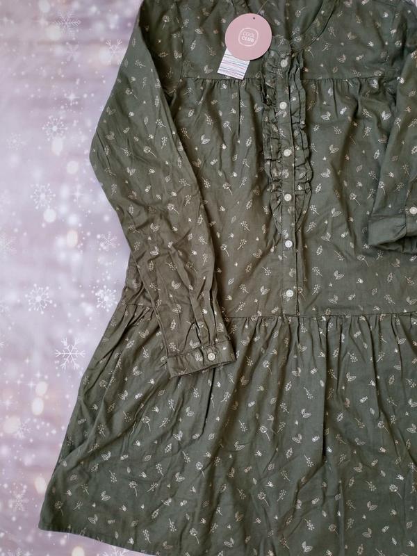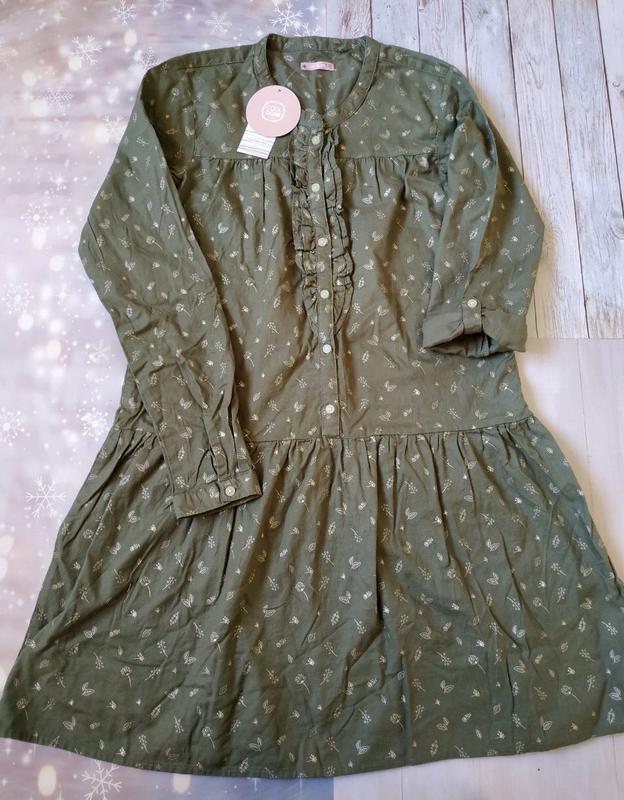 Сукня міді з мусліну з рукавом оливкова зелена муслінова плаття платье