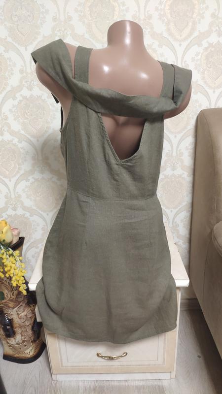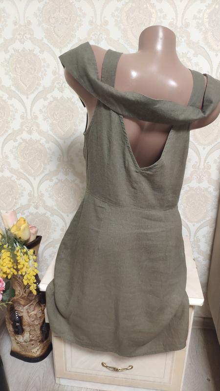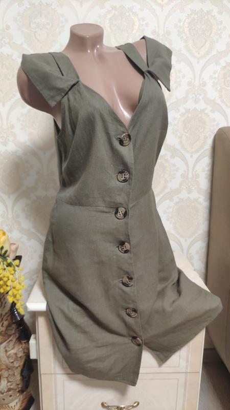 Стильний лляної сарафанчик,сукня,виглядає класно. розмір вказаний 12 ПОГ-48-50 довжина 90 ПОБІДИ-50