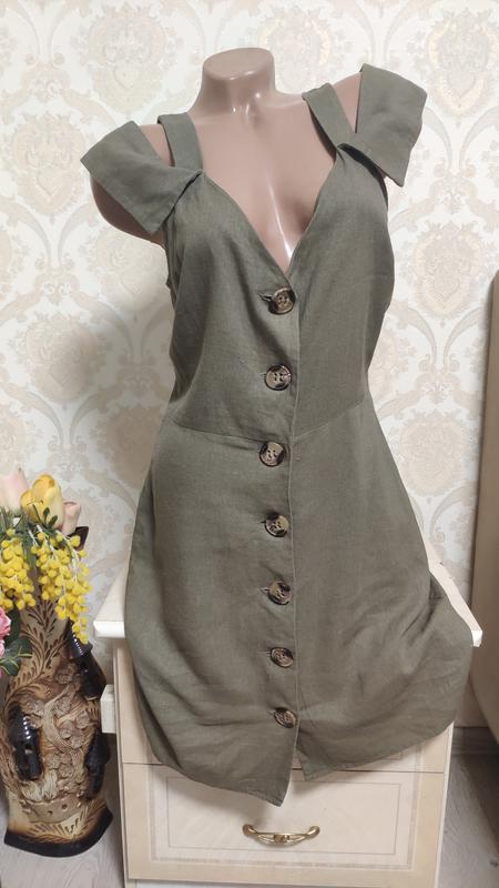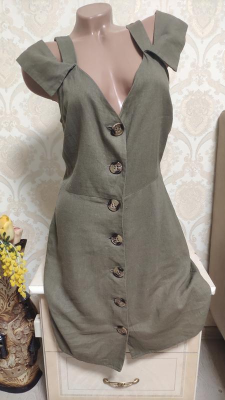 Лляне плаття міді на гудзиках
