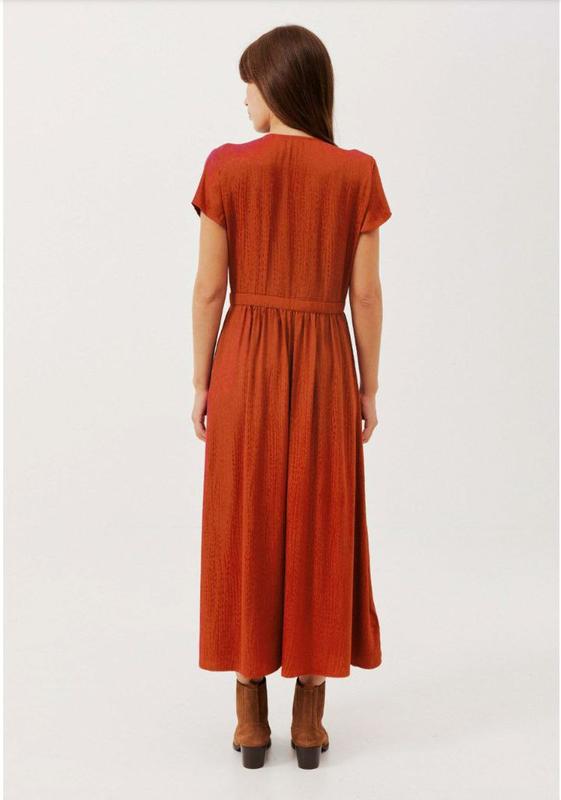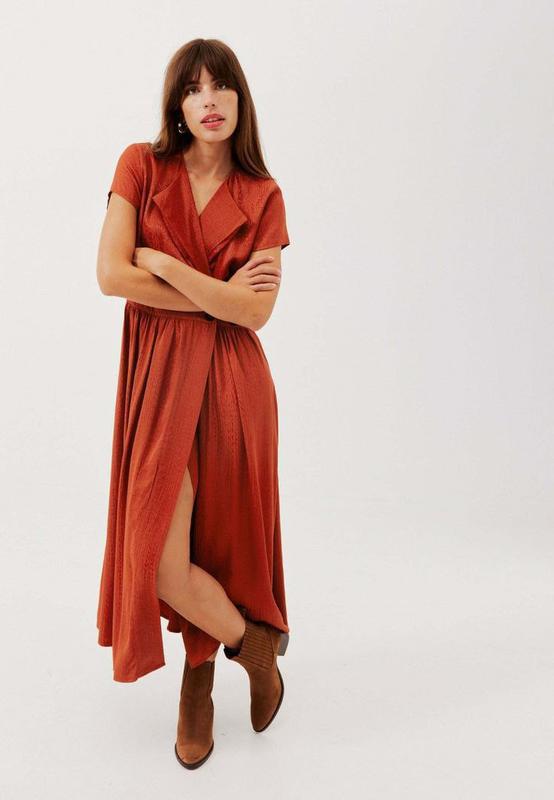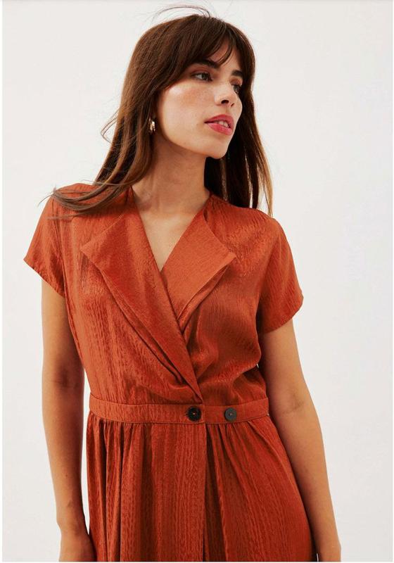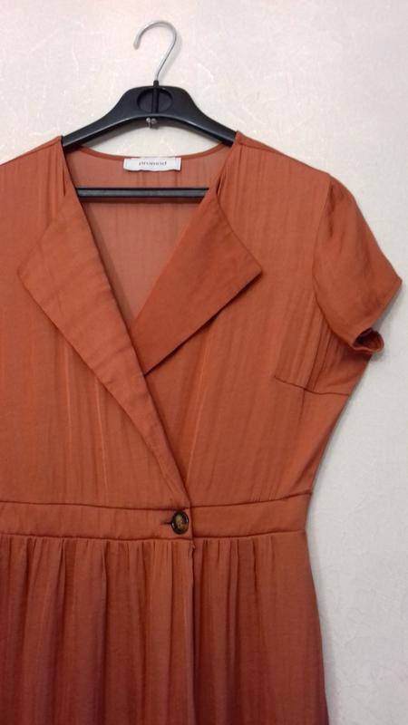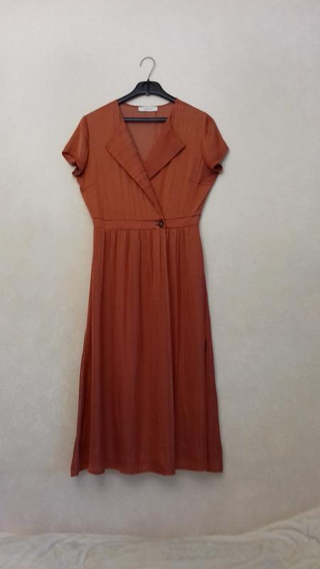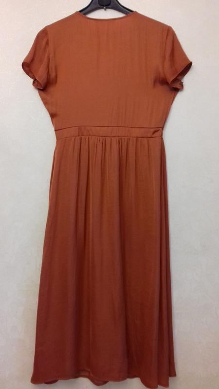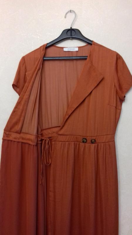 класне плаття на запах відомого бренду PROMOD відмінної якості в ідеальному стані. 100% поліестер. тканина схожа на шовк атласний, не просвещается. вгорі підкладали немає, а спідничка йде з підкладкою шифоновою. колір як на моделі.