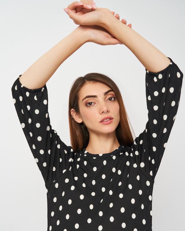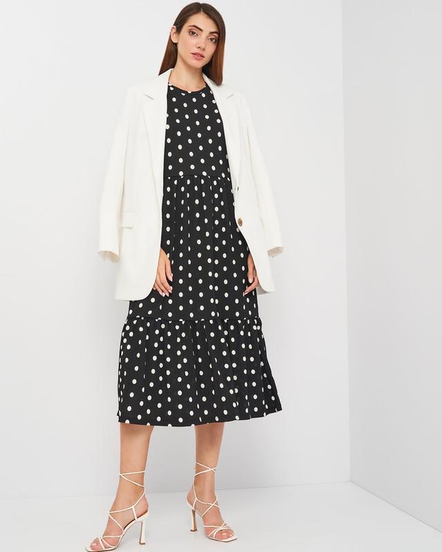 Чорна сукня плаття в горошок довжини міді плаття міді