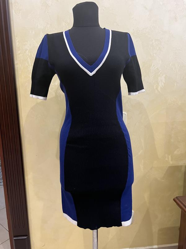 Красиве трикотажне плаття по фігурі від дизайнера Karen Millen . Стан бк без нюансів .( одягала декілька разів ) Мякесеньке , різні типи в’язки , допомагають гарно лягати по тілу . Защіпається на блискавку . Розмір 2 , приблизно S , дивіться заміри на фото ! Склад : 56% віскоза 24% поліестер 17% поліамід 3% еластан ! Дивіться інші мої оголошення ! Є дуже багато фірмових речей такого розміру !