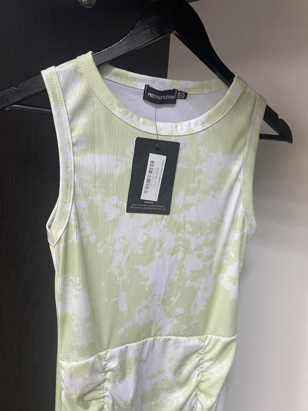 Сукня без рукавів з v-подібним вирізом і оборками в зелений клетчатий колір