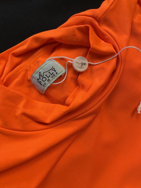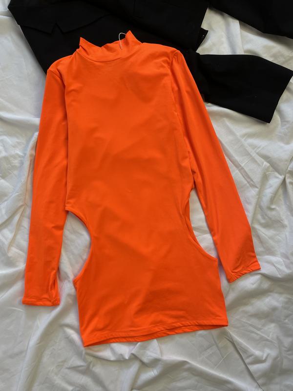 оранжевому кольорі, ідеально сідає по фігурі, не просвічує, йде подвійна тканина, можна носити без білизни або з трусиками на високій посадці/прозорими шлійками/якимись прикольними шлійками, наприклад зі стразами камінчиками стан нової, є пломба від бірки