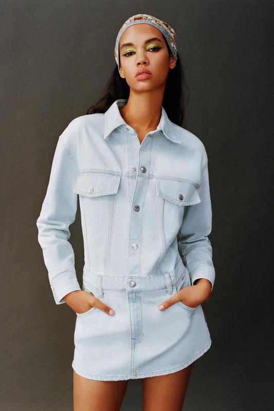 Джинсова сукня з вареного деніму з довгим рукавом, всі застібки на кнопках, нижня частина від поясу на металевій блискавці , класичний комірець, класичні 5 карманів + 2 на грудях. 100% cotton. Розмір S, але краще орієнтуватись по замірах.