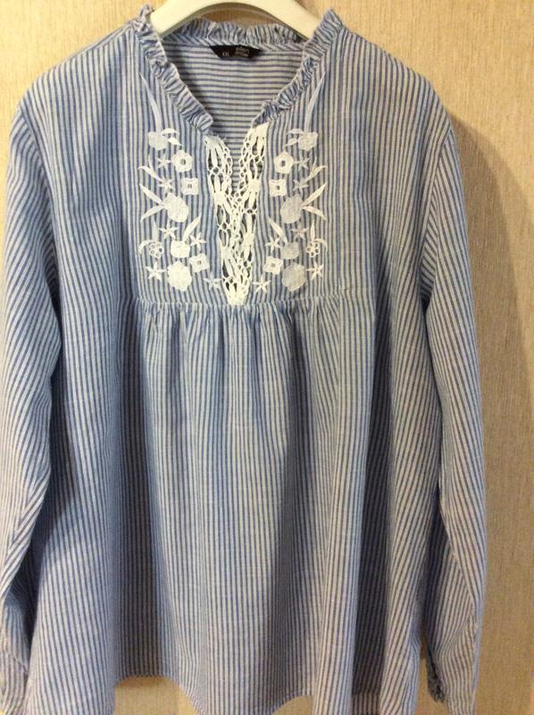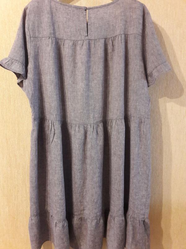 Нова натуральна сукня, присутні паперові наліпки на внутрішній бірці. Рукавчики вільного крою, оброблені воланом. 53% льон і 47% віскоза. Тканина - меланж білих і синіх ниток, ефект джинсової тканини. На бірці розмір UK 16. Заміри - довжина 89, плечі по кокетці 43, ПОГ 65. За рахунок вільного крою підійде на XL- 4XL. Заходьте на мою сторінку, підписуйтесь, пропоную якісні цікаві речі за помірну ціну.