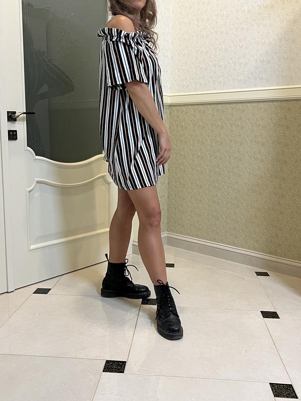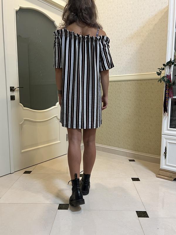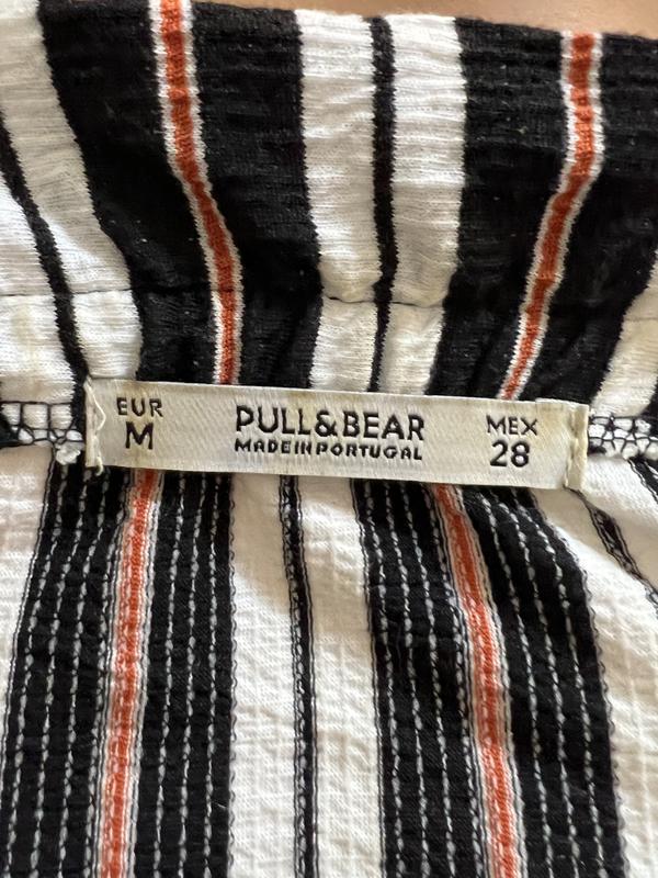 Літнє вільне плаття Pull&Bear, з обгорненими плечима - Візерунок — вертикальна смужка- Розмір M- Тканина — поліестер; Приємна на дотик
