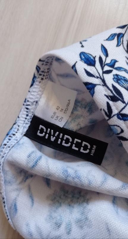Сарафан з квітами.Бренд: DIVIDEDКолір: білий з синім.Розмір вказано:EUR 42/US 10CN 170/96A.Лінія грудей 40 см, тягнетьсяЛінія талії 36 см.Довжина 83 см.Може підійти на xs/ s. /m.