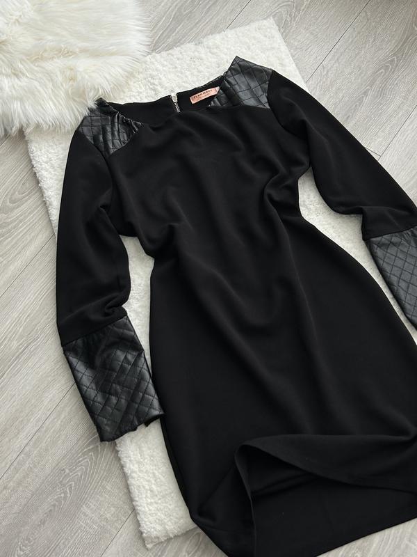 Сукня олівець з елементами шкіри (еко). Сідає по фігурі. Стан ідеальний. Тканина тягнеться. Сзаду на блискавці до пояса. Розмір S-M
